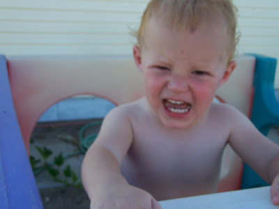 We decided to have a little fun today swimming in bins. When Brandon's sister, Arianna, came to visit a few weeks I realized just how country I have become. I was sleeping when she showed up around noon and my kids were running around in their diapers. The kids were so excited to collect eggs and feed the chickens and then they played in the bins and sprinklers in their diapers. I think if I lived in the city I would still let them swim in bins but wearing swimmies. It's nice that out here I seldom have visiters so I don't have to impress anyone. On the other hand..I do miss entertaining and dressing up all the time. Here are pics of our adventure today. While taking these with my old camera I realized how much I miss my nicer broken one. I was thinking that I would servive without it but I don't think I will. :( I know that now I'll have to wait...